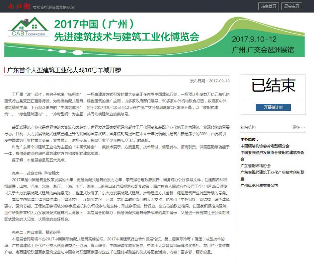 中國(guó)鋼結(jié)構(gòu)資訊網(wǎng)發(fā)布有關(guān)2017中國(guó)筑博會(huì)·廣州開幕式的報(bào)道 (2017-10-30)