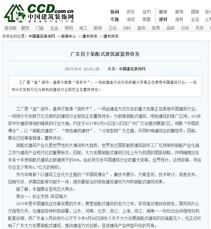 中國(guó)鋼結(jié)構(gòu)資訊網(wǎng)發(fā)布有關(guān)2017中國(guó)筑博會(huì)·廣州開(kāi)幕式的報(bào)道 (2017-10-30)
