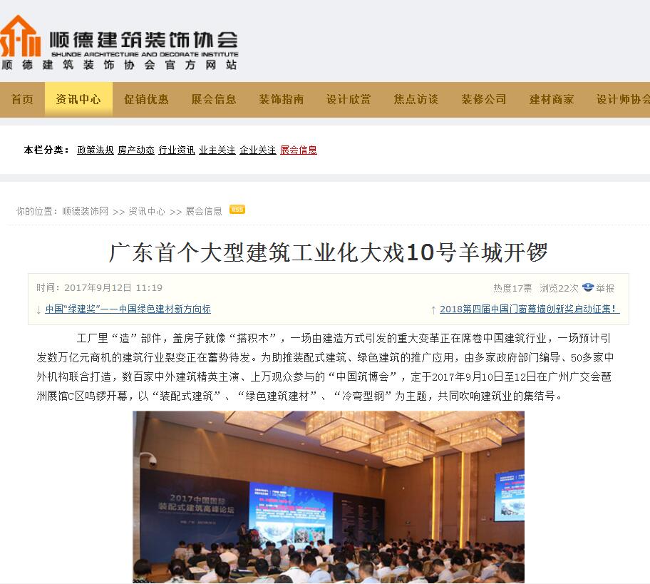 綠建之窗網(wǎng)發(fā)布有關(guān)2017中國(guó)筑博會(huì)·廣州開(kāi)幕式的報(bào)道 (2017-10-30)