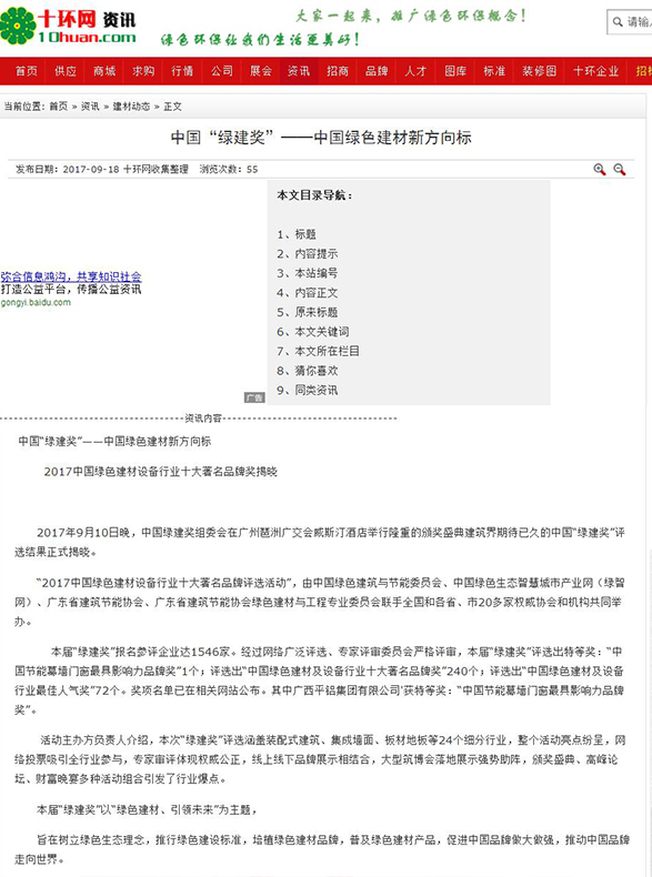 鋁博士網(wǎng)發(fā)布有關(guān)2017中國(guó)綠色建材設(shè)備行業(yè)十大著名品牌獎(jiǎng)的報(bào)道 (2017-10-31)