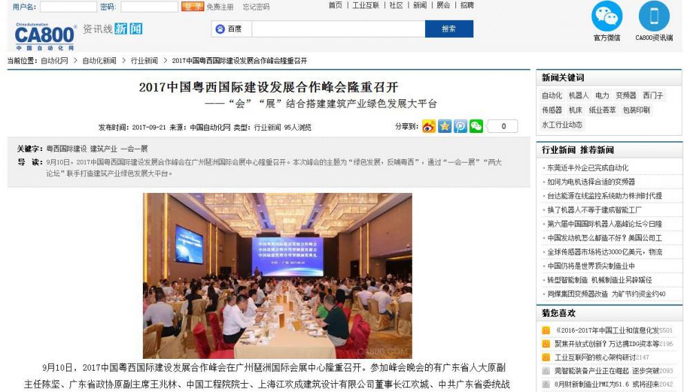 招商寶網(wǎng)發(fā)布有關(guān)2017中國粵西國際建設發(fā)展合作峰會的報道 (2017-10-31)