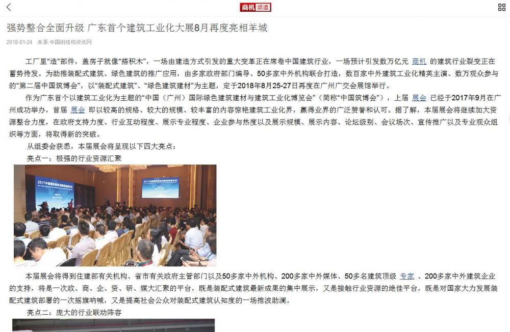 新浪廣東網發(fā)布有關2017中國筑博會·廣州的報道 (2017-11-01)